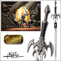 If you are new to sword collecting, you should know that Kit Rae is probably one of the best fantasy/collectible weapon designer in the world. Kit Rae worked for United Cutlery during fifteen years as their lead designer. He created many of the popular swords that collectors are dying to get. Swords like: Samurai 300, Steel Apocalypse, the swords of the ancients and many more.